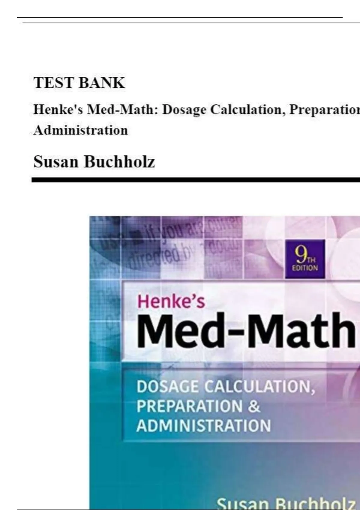 Test Bank - Henke's Med-Math Dosage-Calculation, Preparation, and Administration, 9th Edition (Buchholz, 2020), Chapter 1-10 | All Chapters.