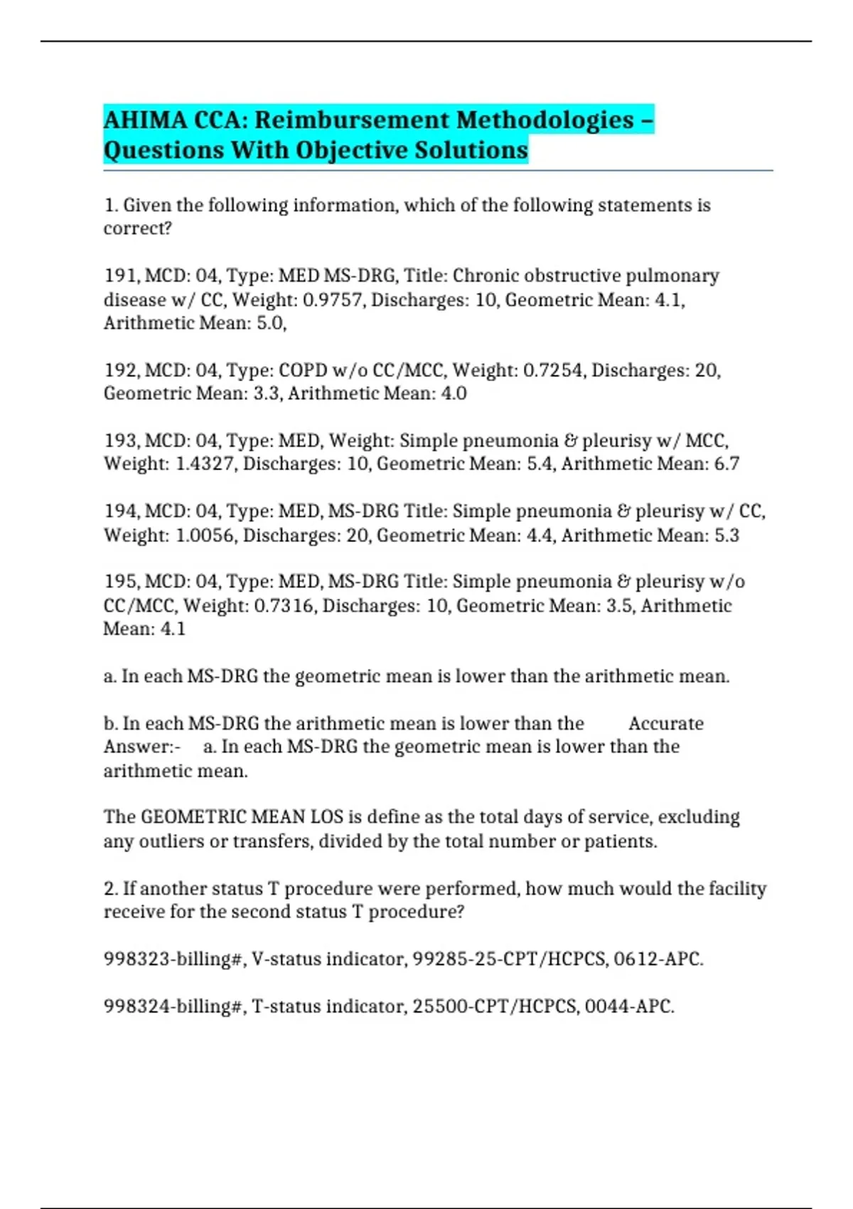 d. Resource-based relative values Accurate Answer:- c. Major diagnostic