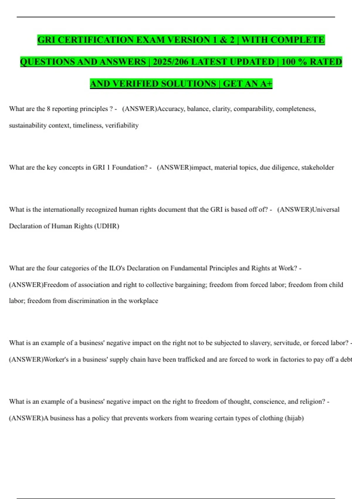 QUESTIONS AND ANSWERS | 2025/206 LATEST UPDATED | 100 % RATED