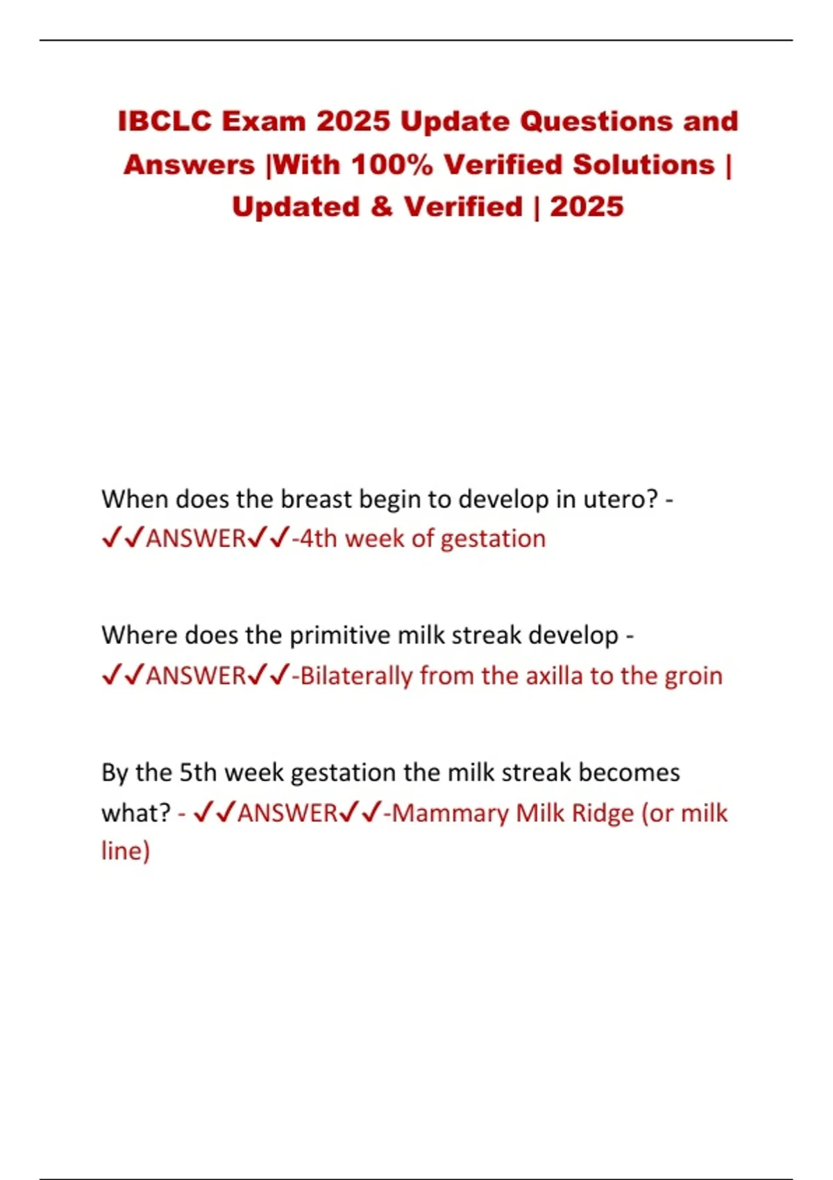 ✔✔ANSWER✔✔-4th week of gestation