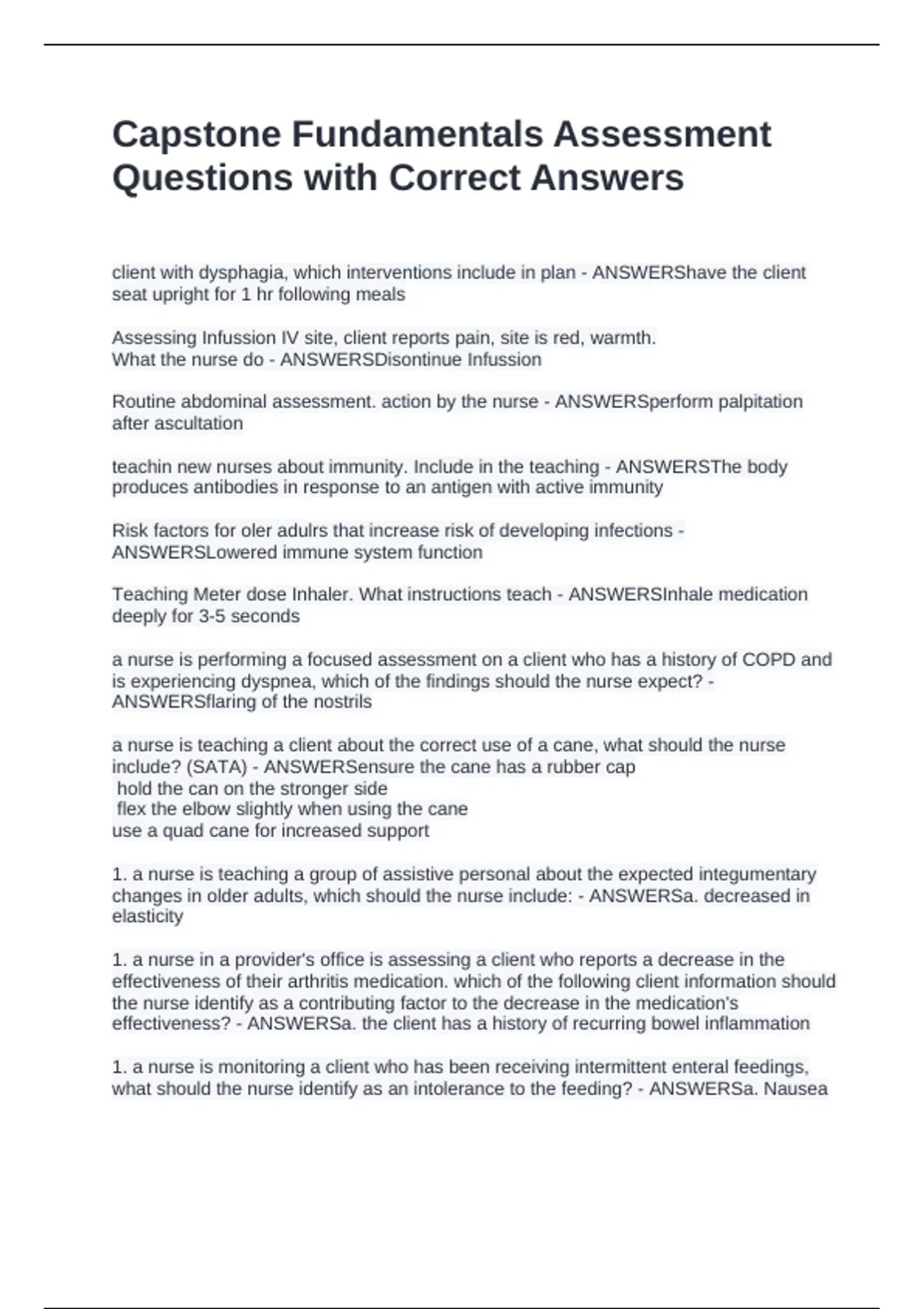 Capstone Fundamentals Assessment Questions with Correct Answers