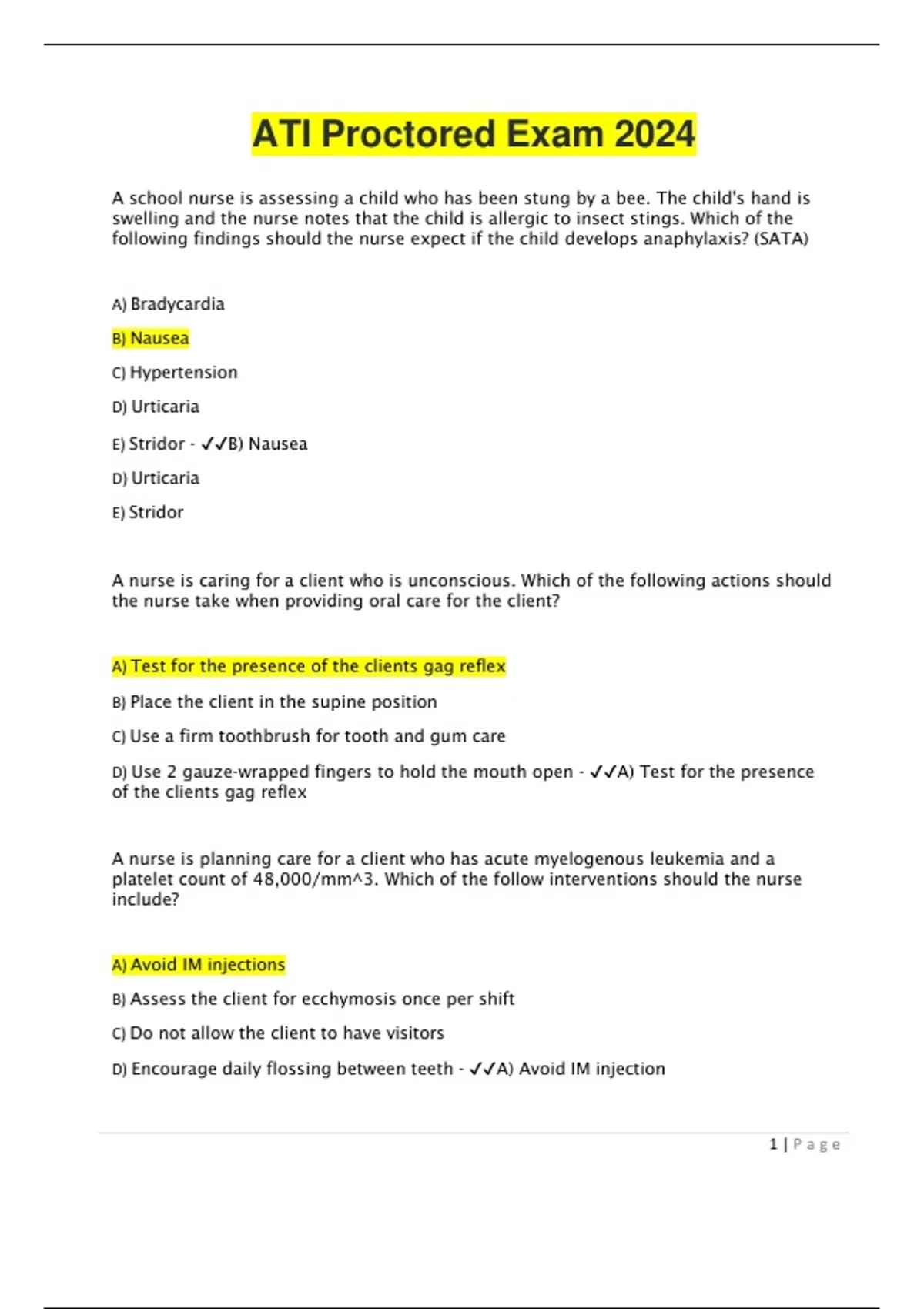 ATI Proctored Exam 2024 | Verified Questions and Answers Study Guide