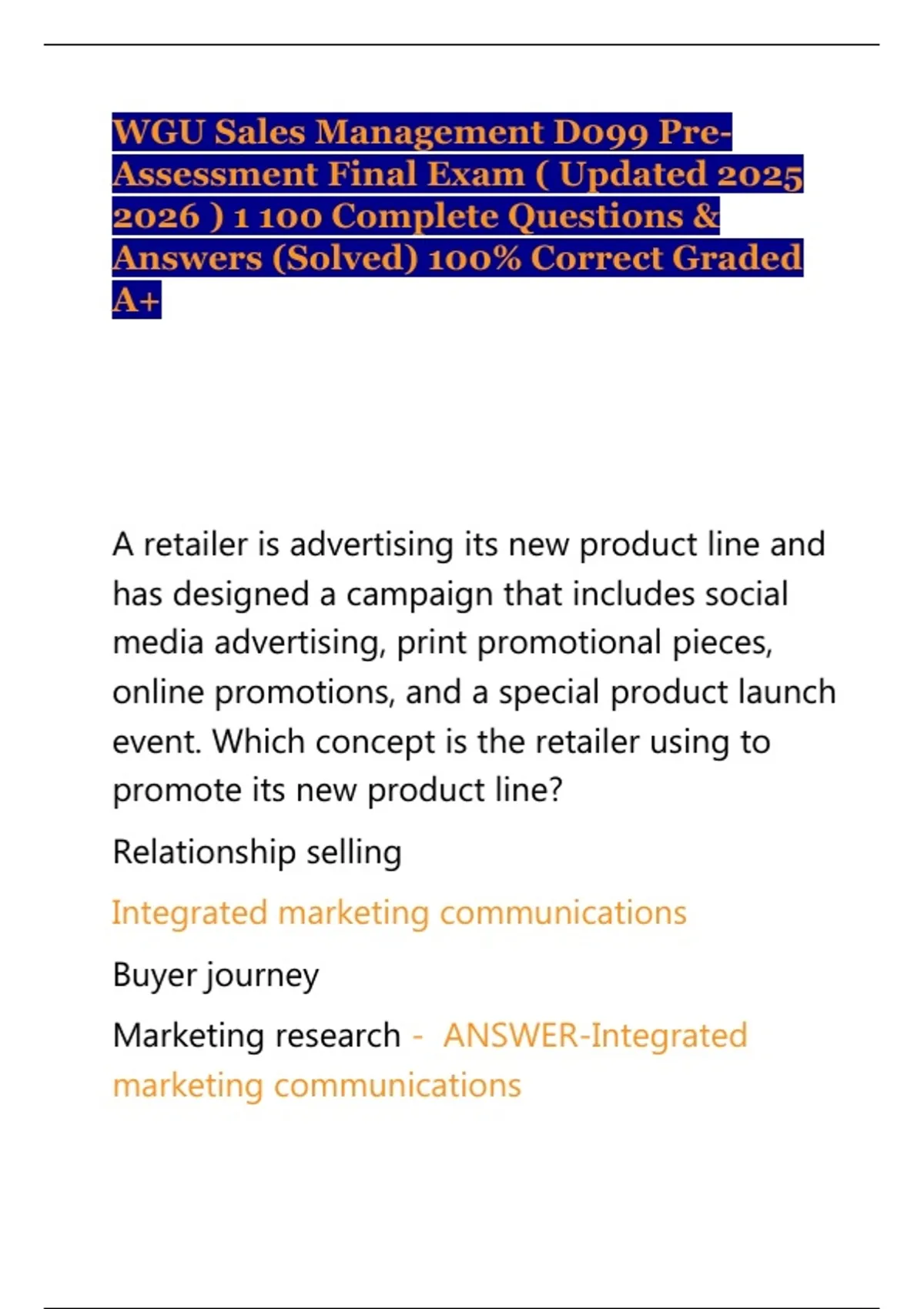 WGU Sales Management D099 Pre-