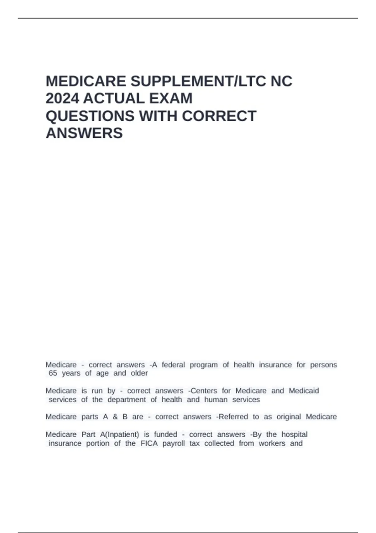 Medicare hPart hA(Inpatient) his hfunded h- hcorrect hanswers h-By hthe hhospital