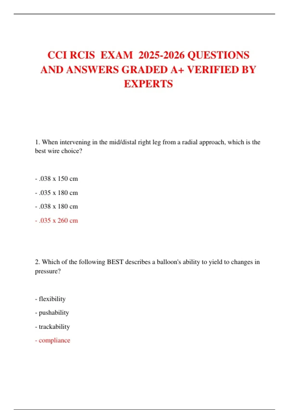 CCI RCIS EXAM QUESTIONS AND ANSWERS GRADED A+ VERIFIED BY EXPERTS