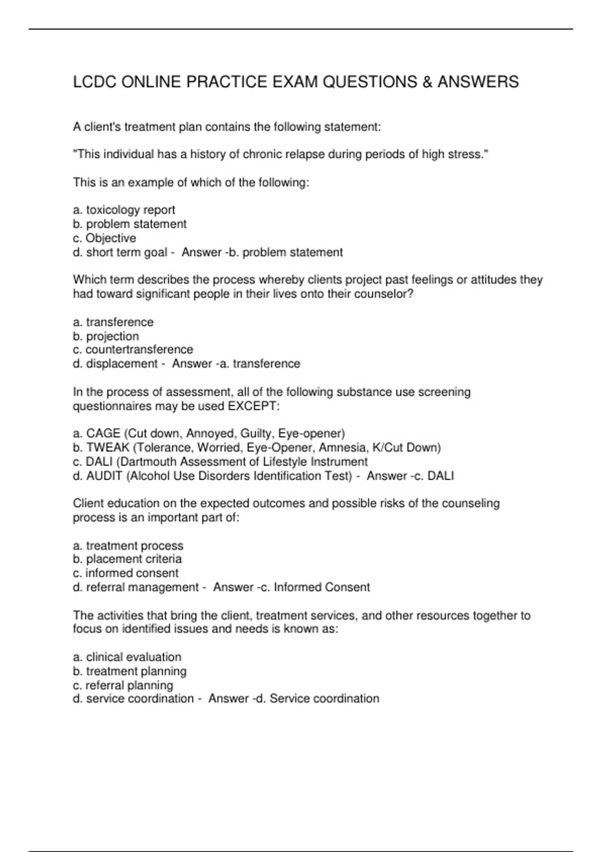 LCDC ONLINE PRACTICE EXAM QUESTIONS & ANSWERS