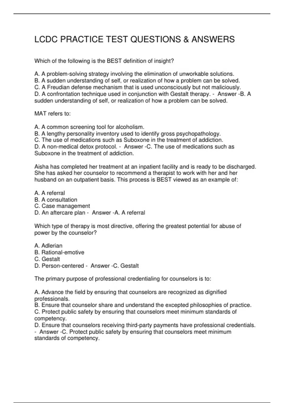 LCDC PRACTICE TEST QUESTIONS & ANSWERS