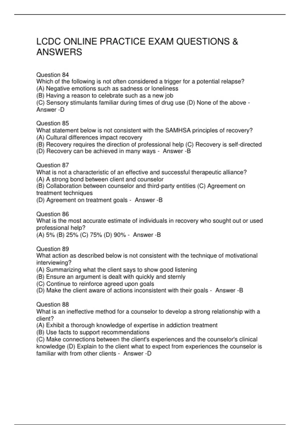 LCDC ONLINE PRACTICE EXAM QUESTIONS & ANSWERS