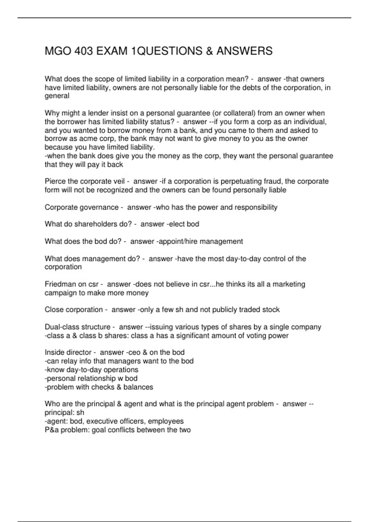 MGO 403 EXAM 1QUESTIONS & ANSWERS