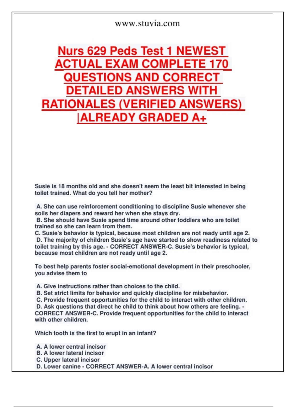 Nurs 629 Peds Test 1 NEWEST ACTUAL EXAM COMPLETE 170 QUESTIONS AND CORRECT DETAILED ANSWERS WITH RATIONALES.pdf