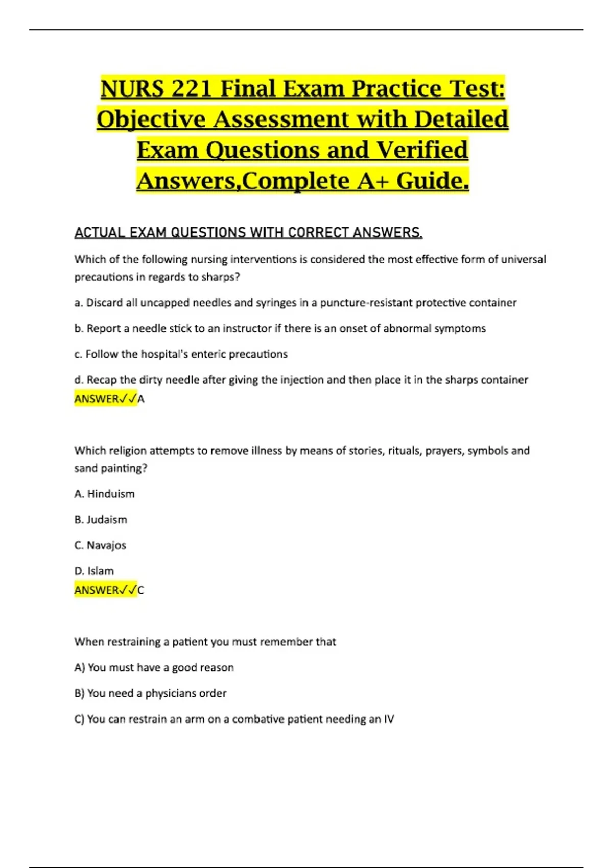 NURS 221 Final Exam Practice Test: Objective Assessment with Detailed Exam Questions and Verified Answers,Complete A+ Guide. NURS 221 Final Exam Practice Test: Objective Assessment with Detailed Exam Questions and Verified Answers,Complete A+ Guide. NURS 221 Final Exam Practice Test: Objective Assessment with Detailed Exam Questions and Verified Answers,Complete A+ Guide.