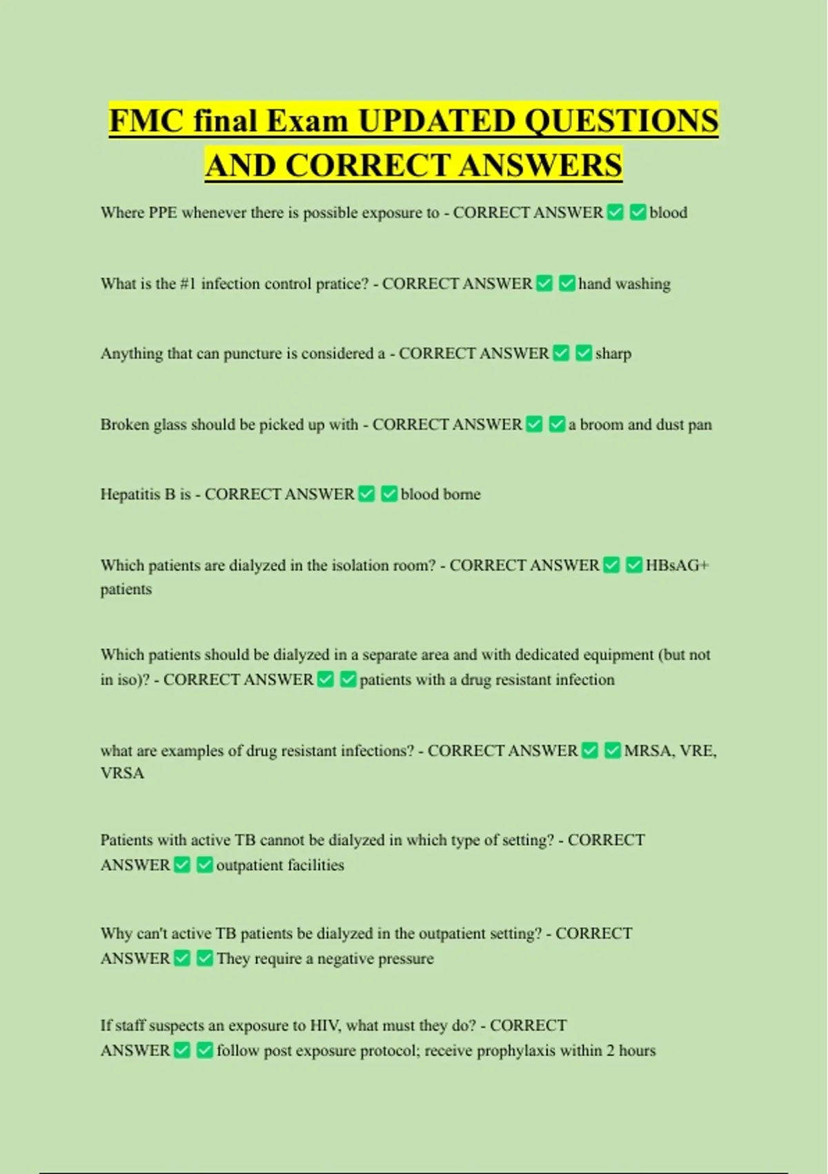Which patients are dialyzed in the isolation room? - CORRECT ANSWER HBsAG+