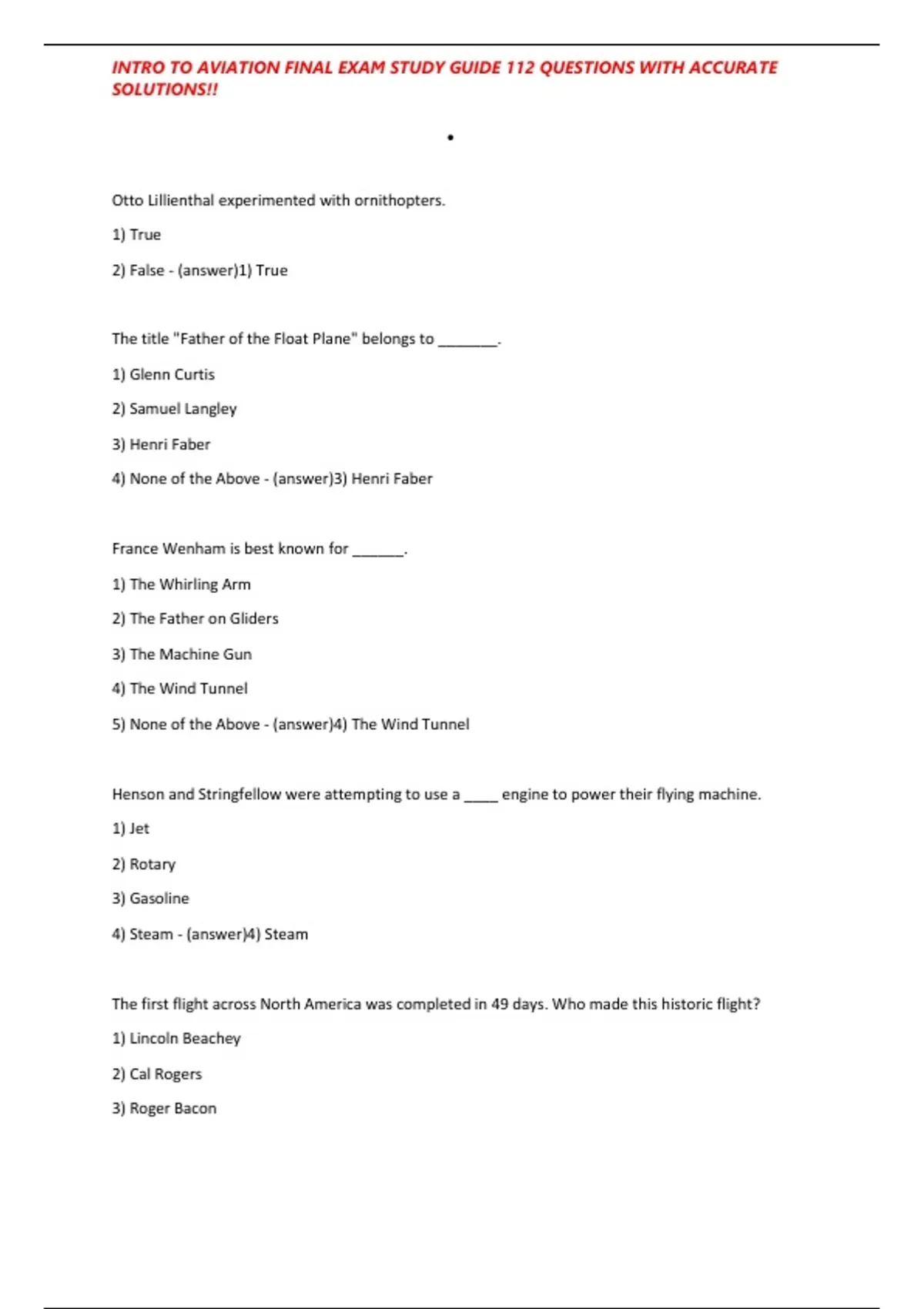 , INTRO TO AVIATION FINAL EXAM STUDY GUIDE 112 QUESTIONS WITH ACCURATE