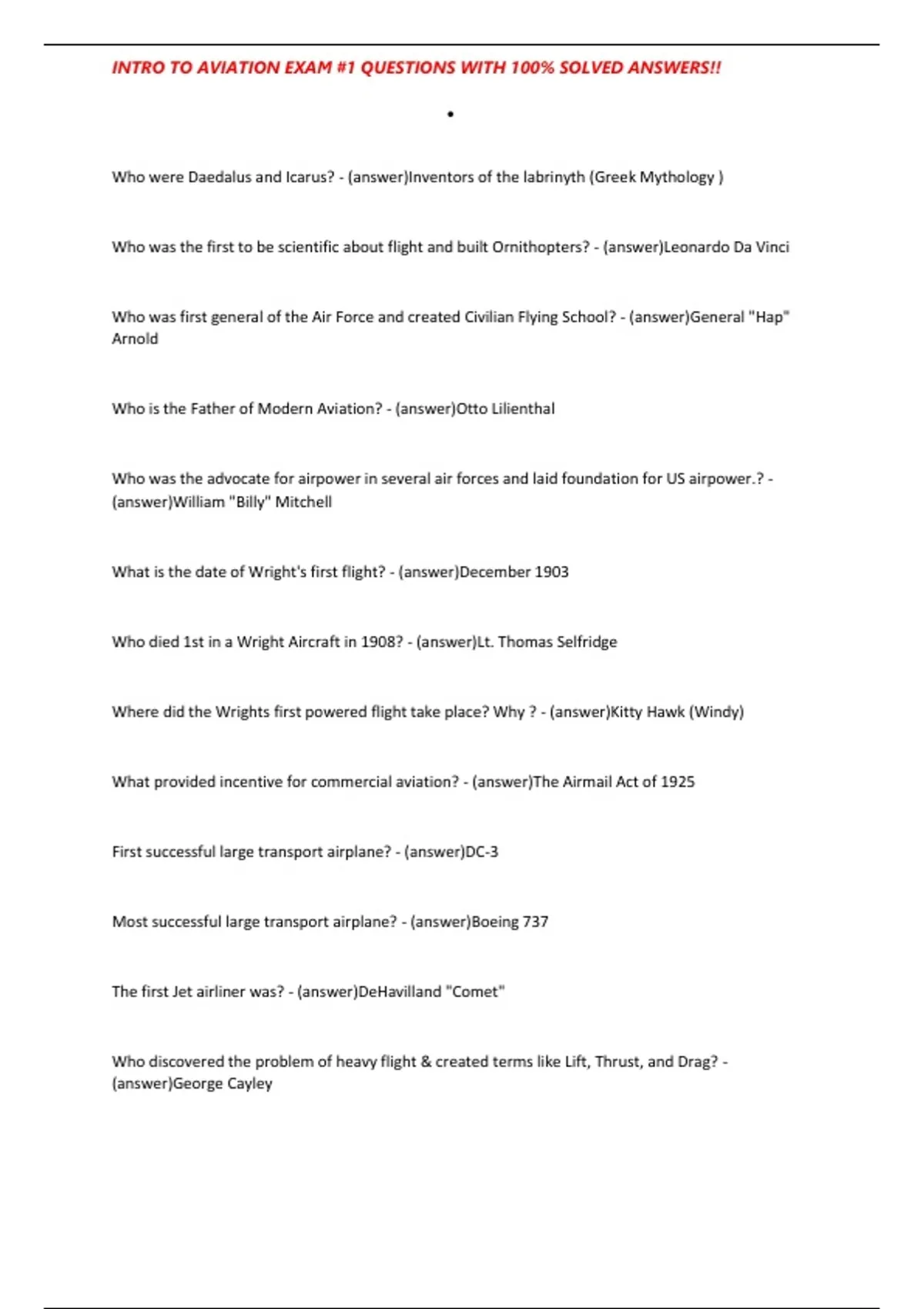 Who is the Father of Modern Aviation? - (answer)Otto Lilienthal