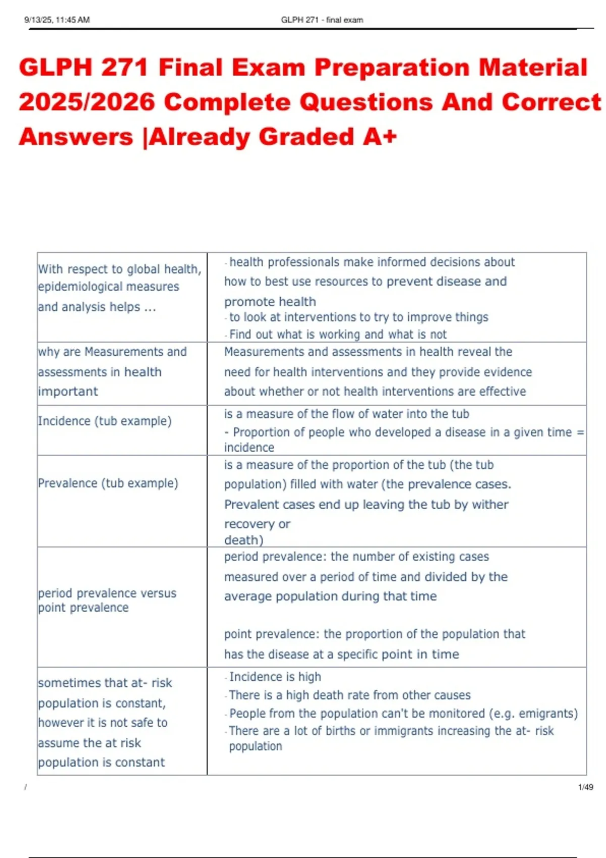 GLPH 271 Final Exam Preparation Material 2025/2026 Complete Questions And Correct Answers |Already Graded A+