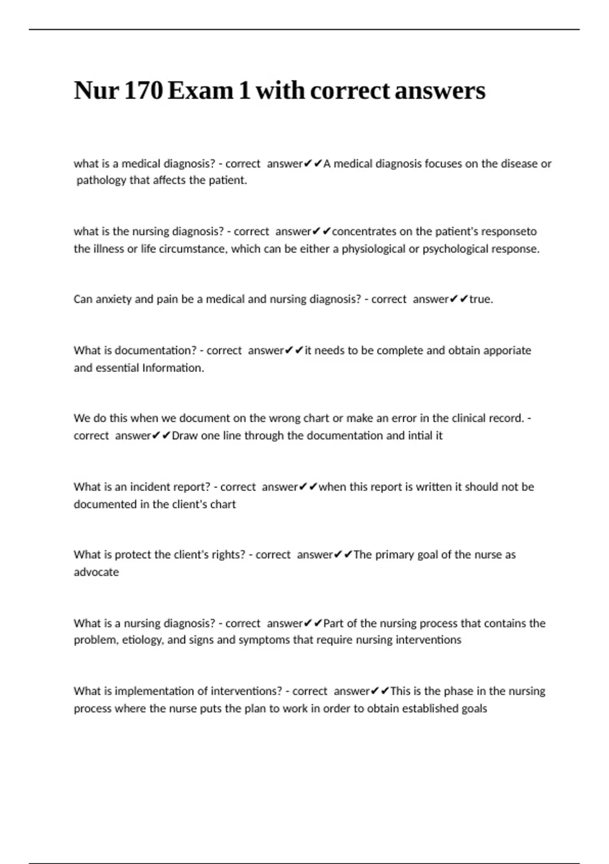 Nur 170 Exam 1 with correct answers |||\\\ |||\\\ |||\\\ |||\\\ |||\\\ |||\\\