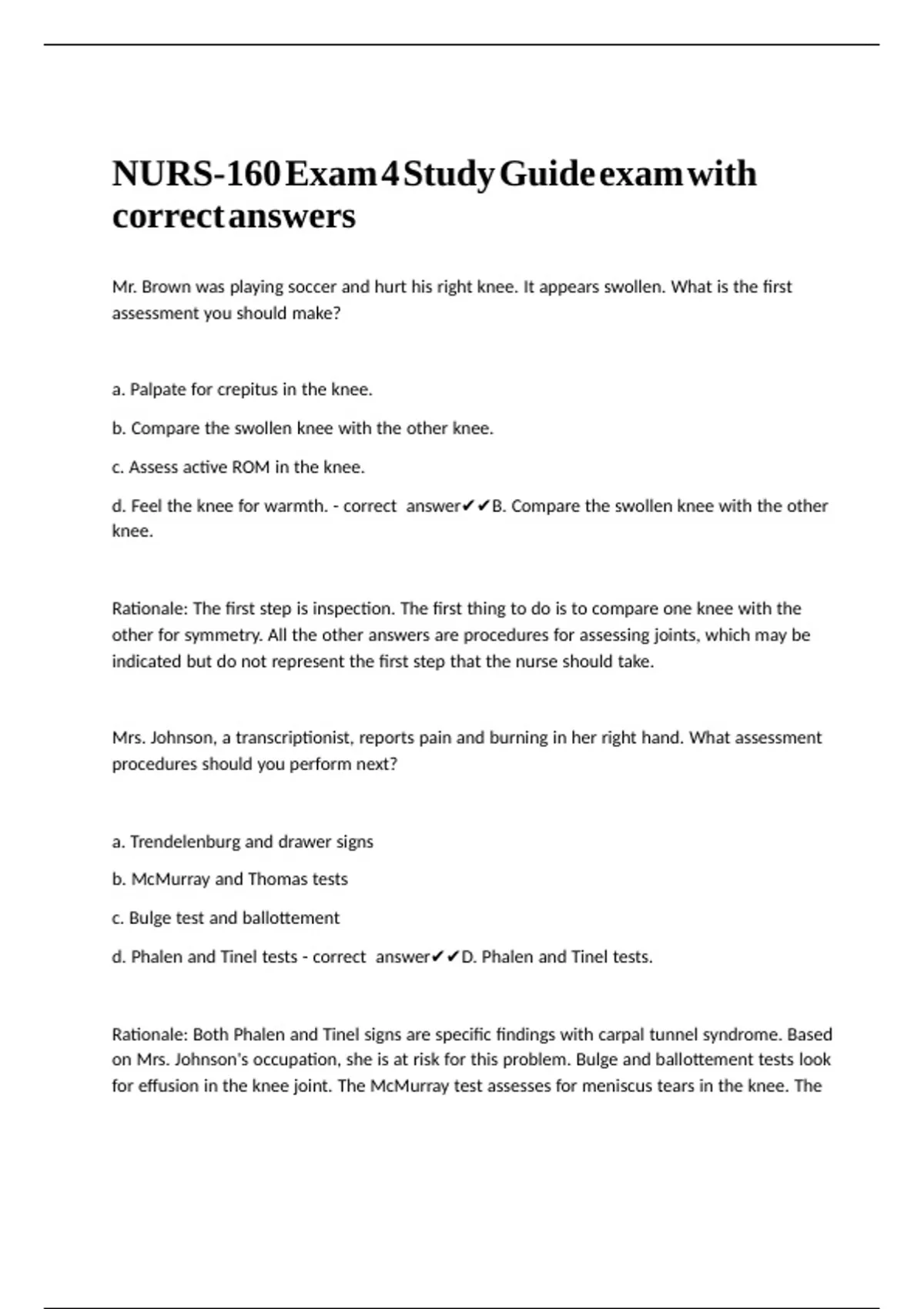 NURS-160 Exam 4 Study Guide exam with correct answers.