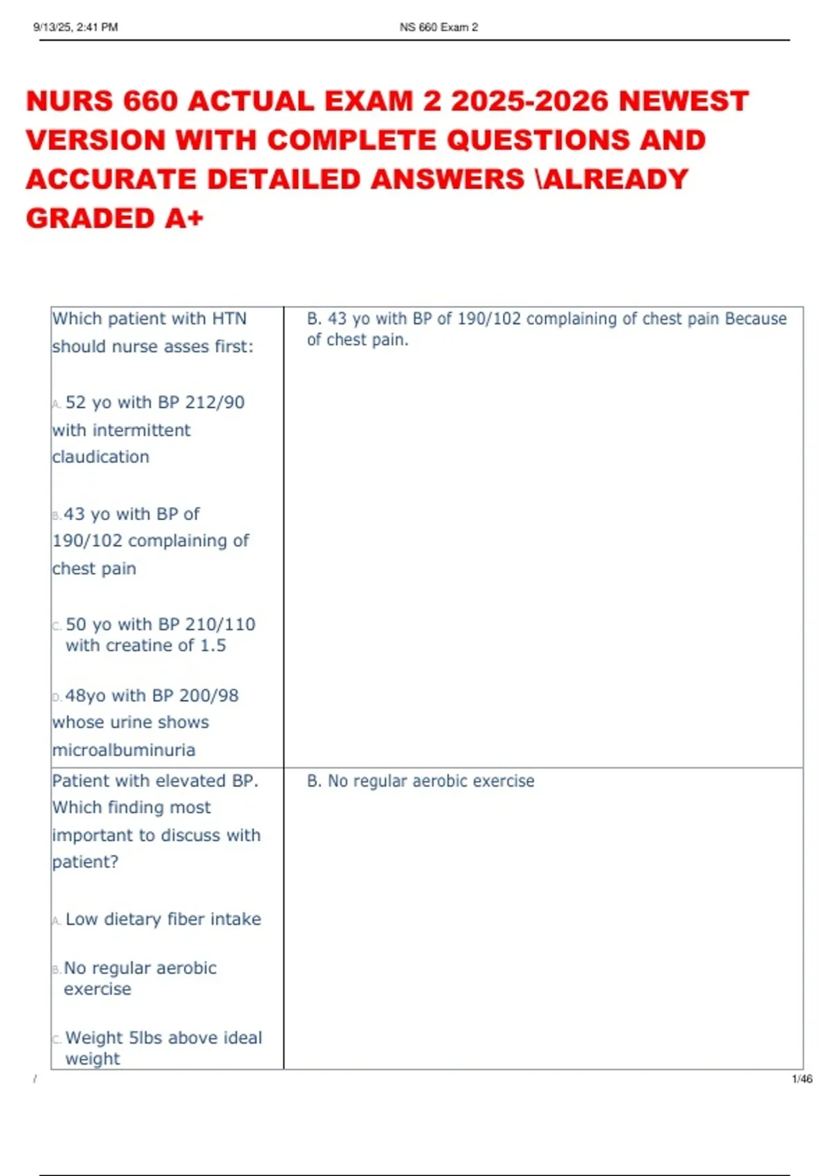 NURS 660 ACTUAL EXAM 2 2025-2026 NEWEST