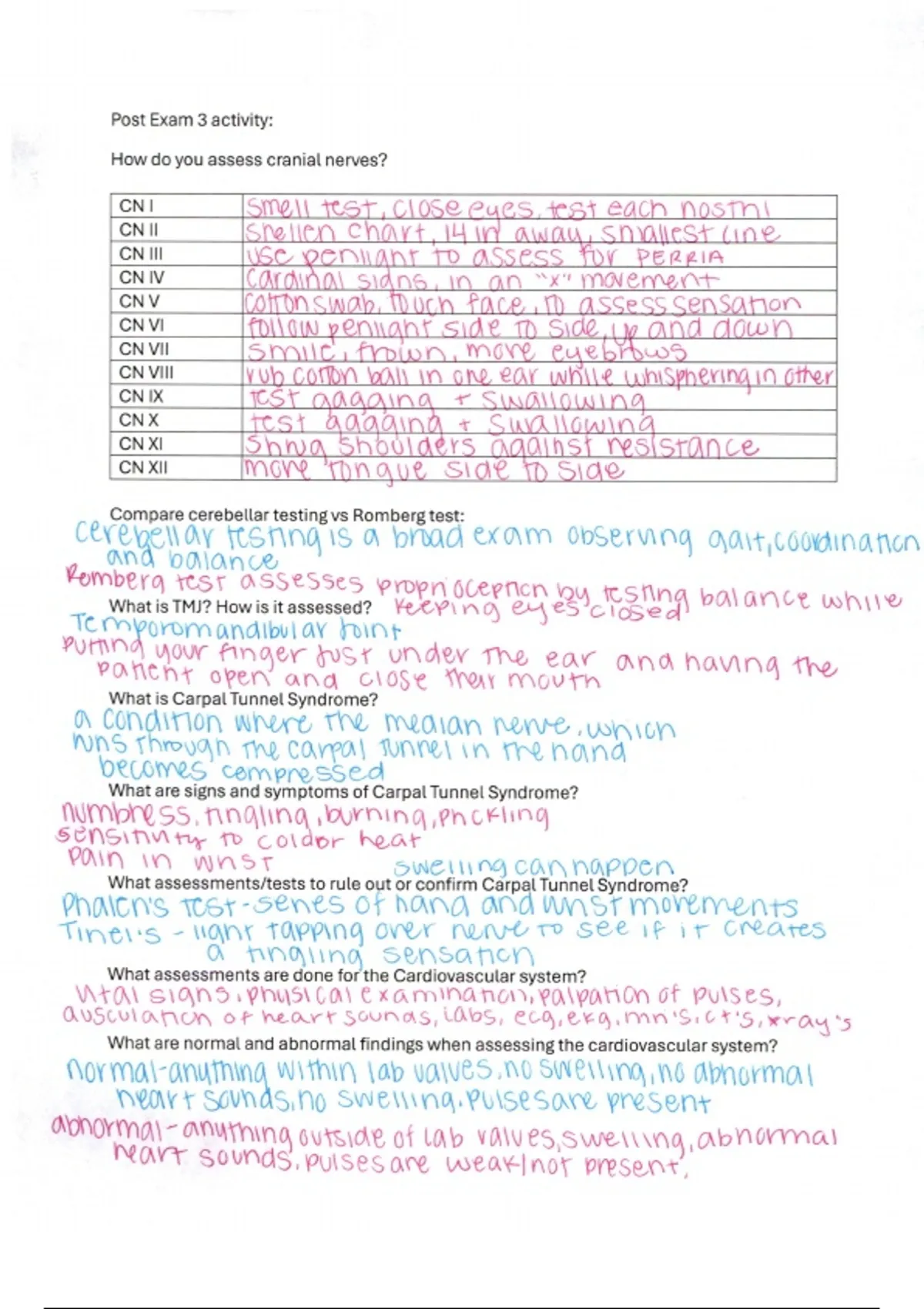 Exam 4 work sheet activity covering some important topics from the all the notes