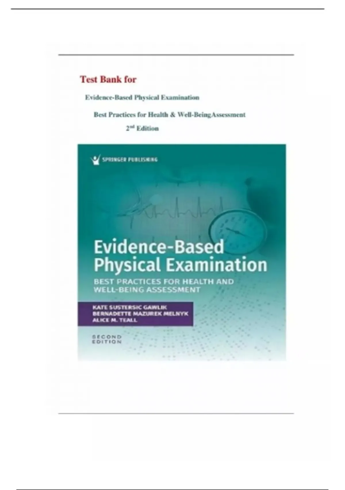 TEST BANK FOR Evidence-Based Physical Examination Best Practices for Health & Well-Being Assessment 2nd Edition ; ISBN: 9780826155313, All Chapters / Full Complete