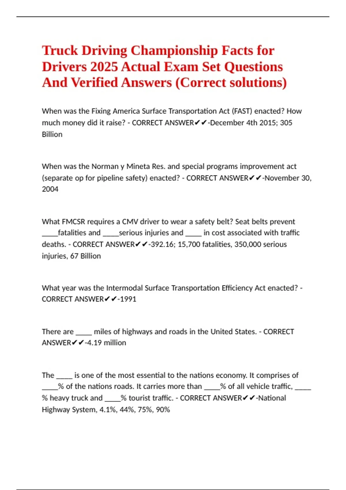 % heavy truck and ____% tourist traffic. - CORRECT ANSWER✔✔-National