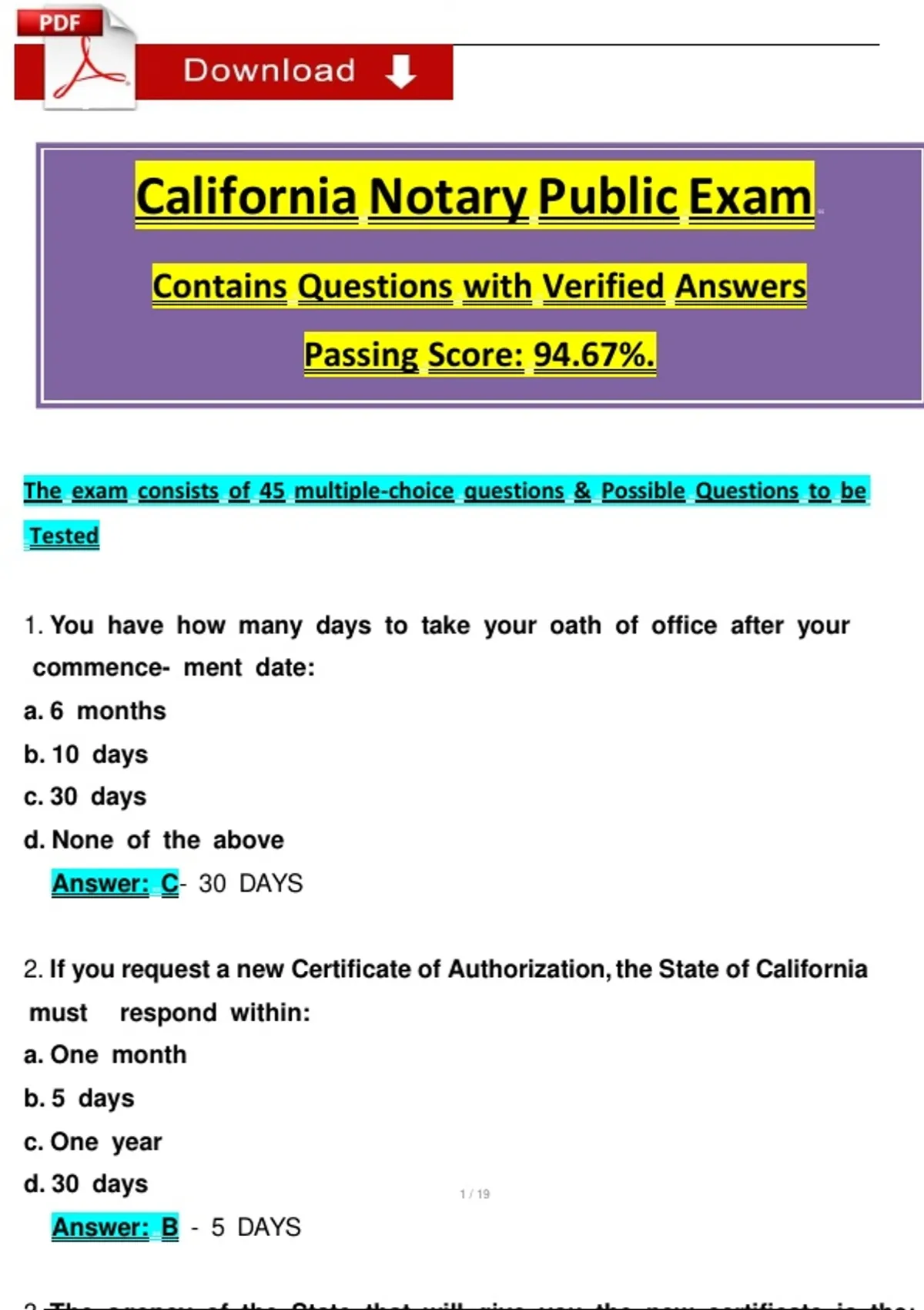 Passing Score: 94.67%.