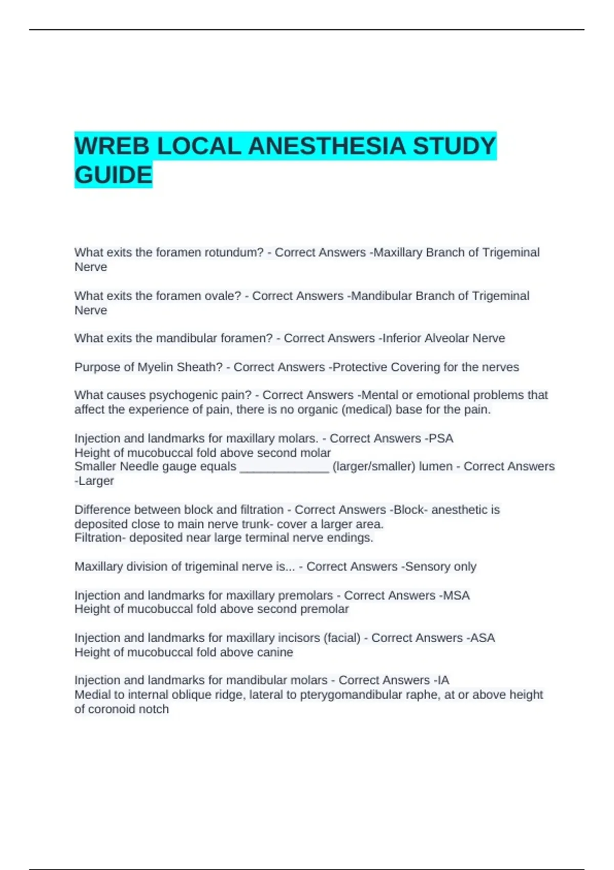 Injection and landmarks for mandibular molars - Correct Answers -IA