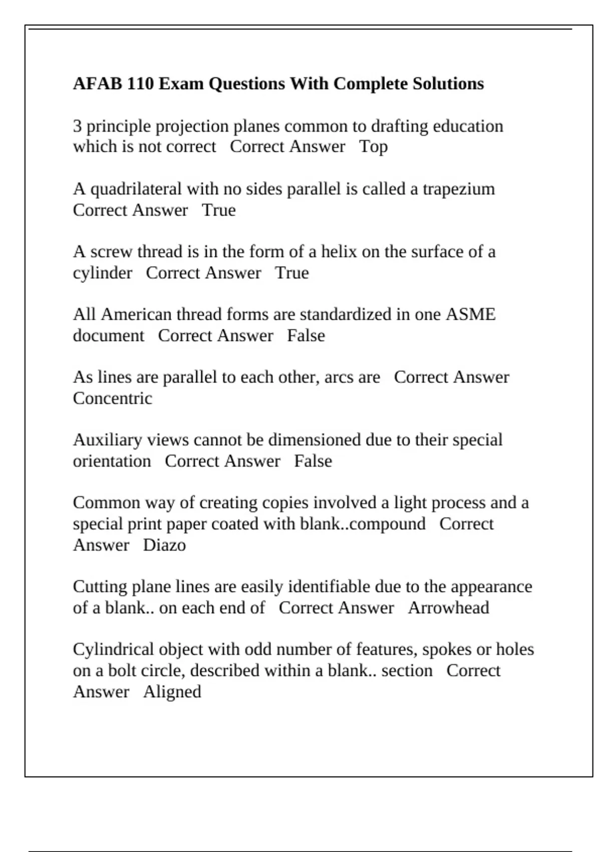 AFAB 110 Exam Questions With Complete Solutions