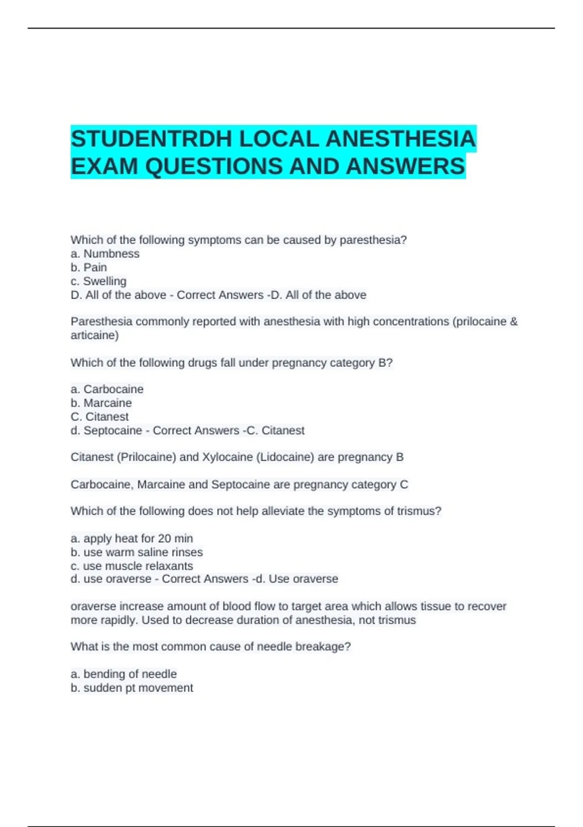 d. the patient is experiencing syncope - Correct Answers -a. Local anesthetic was