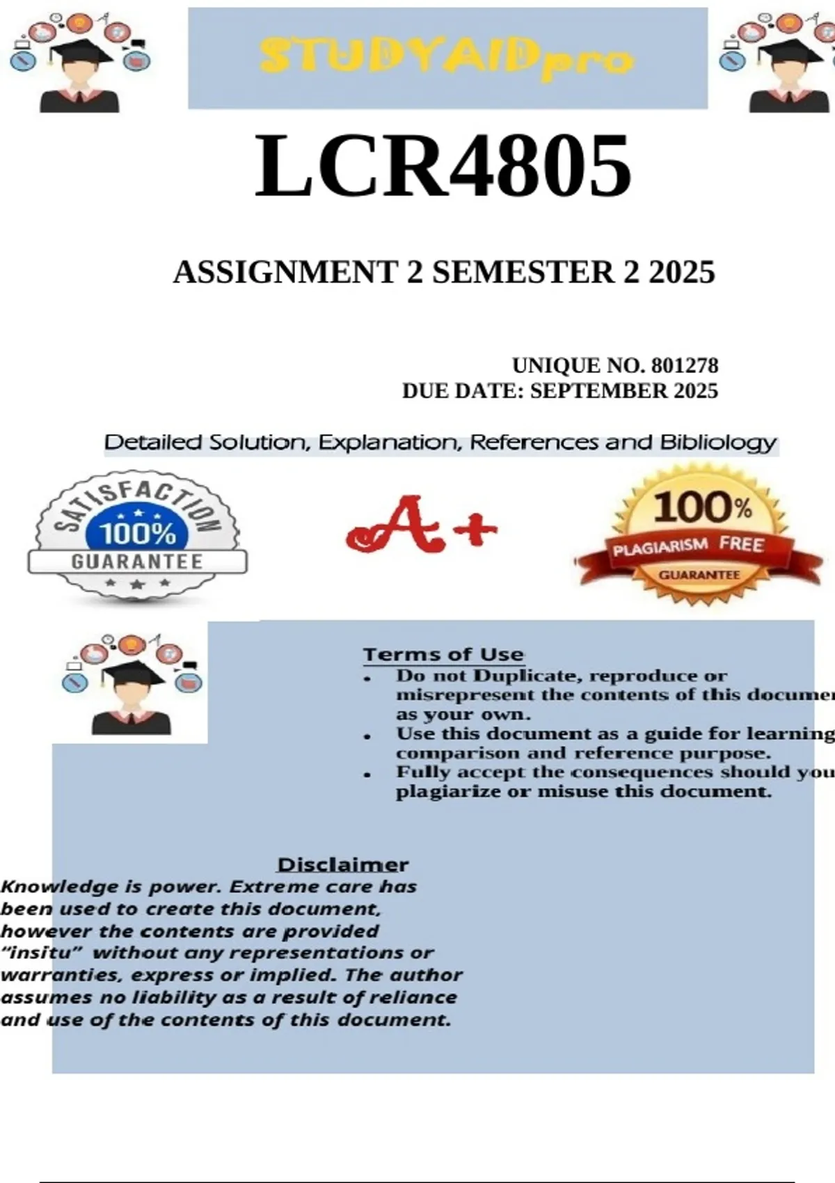 LCR4805 Assignment 2 Semester 2 2025; 100% TRUSTED workings with detailed Answers for A+ Grade.