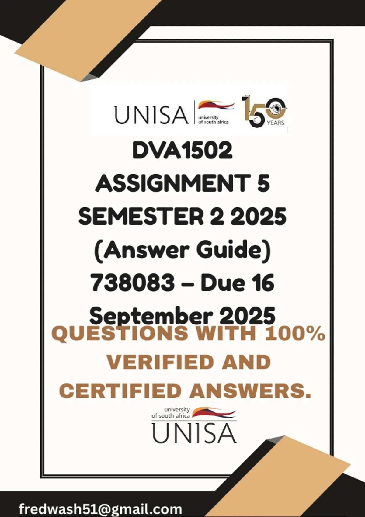 DVA1502 ASSIGNMENT 5 SEMESTER 2 2025 (Answer Guide) 738083 – Due 16
