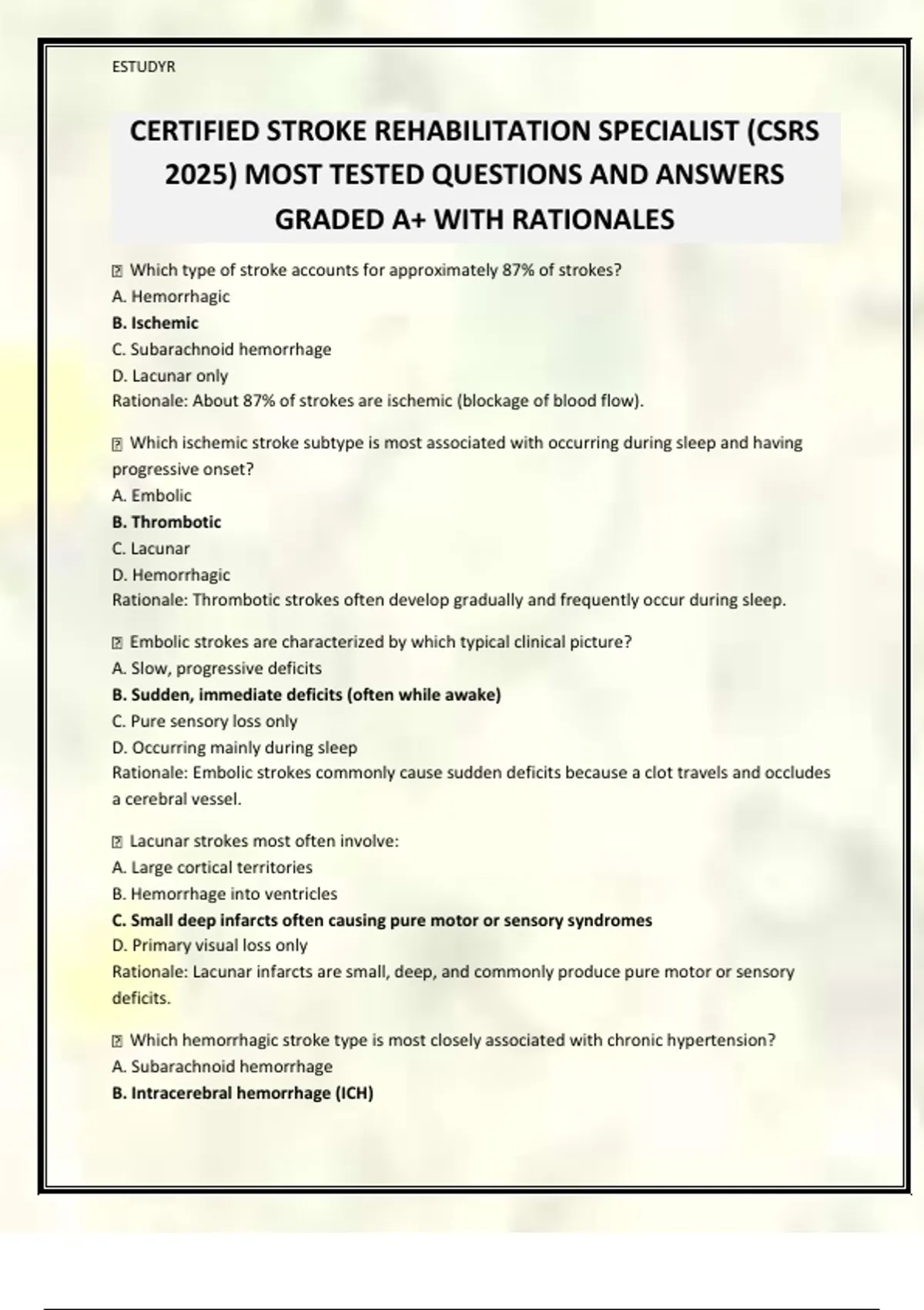 CERTIFIED STROKE REHABILITATION SPECIALIST (CSRS