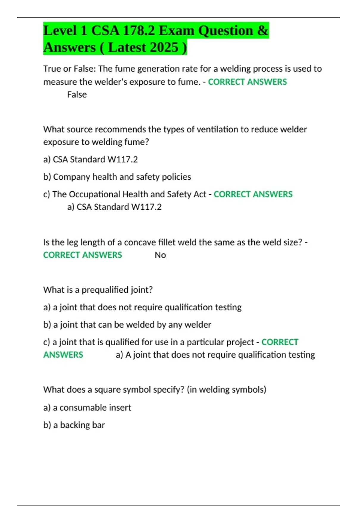 ✔✔a) CSA Standard W117.2