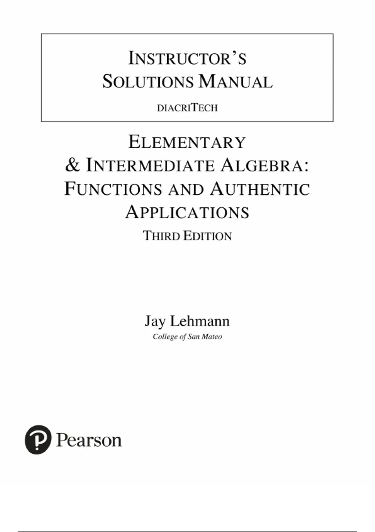 Solutions for Elementary & Intermediate Algebra: Functions and Authentic Applications 3rd Edition by Jay Lehmann |All Chapters| Graded A+