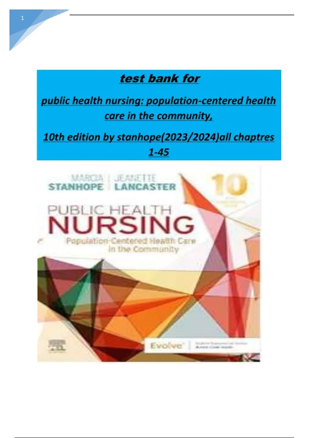 test bank for public health nursing: population-centered health care in the community, 10th edition by stanhope(2023/2024)all chaptres 1-45 test bank for public health nursing: population-centered health care in the community, 10th edition by stanhope(2023/2024)all chaptres 1-45