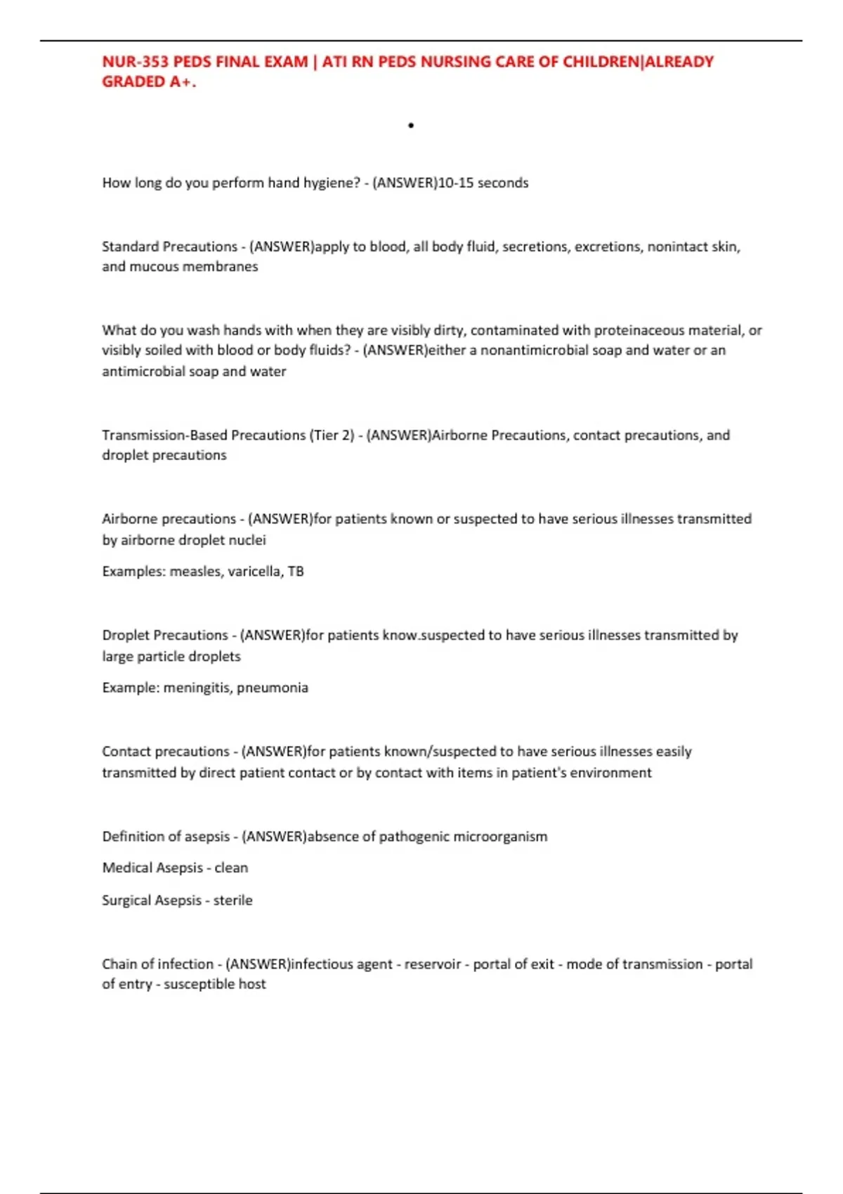 , NUR-353 PEDS FINAL EXAM | ATI RN PEDS NURSING CARE OF CHILDREN|ALREADY