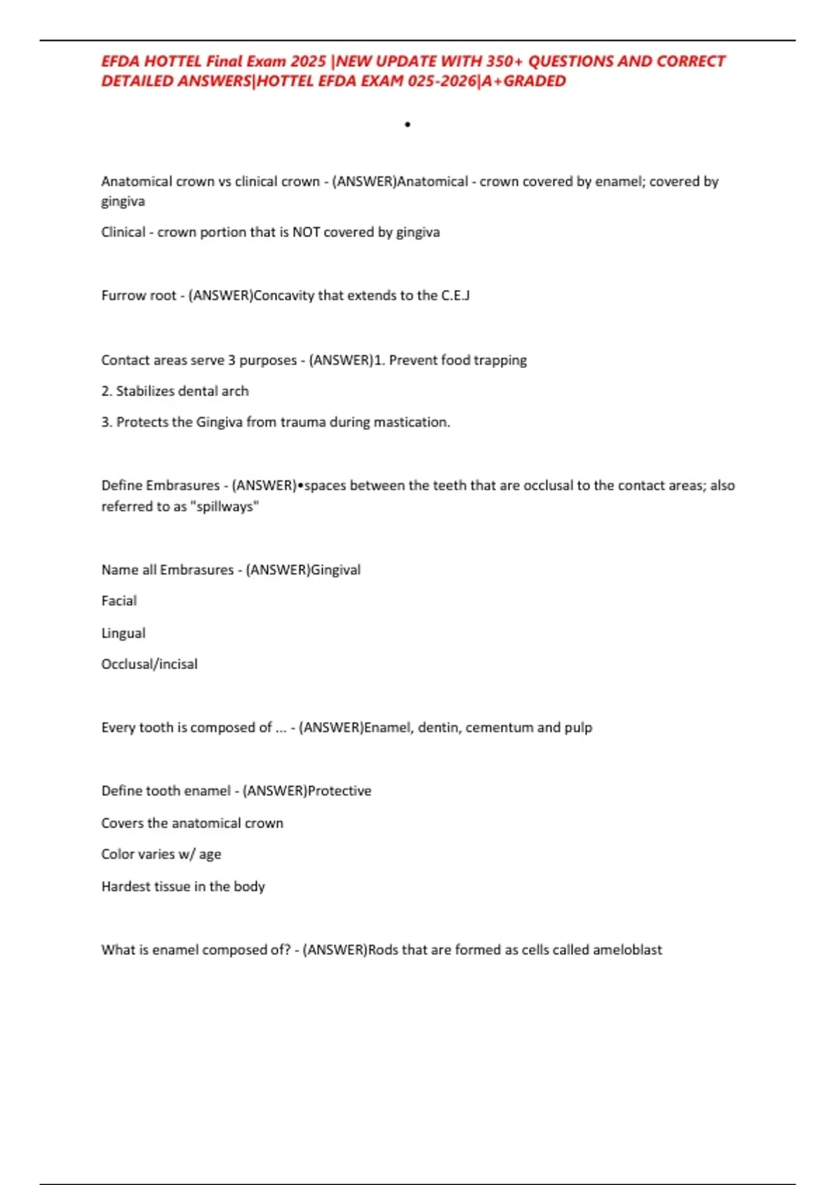 DETAILED ANSWERS|HOTTEL EFDA EXAM 025-2026|A+GRADED