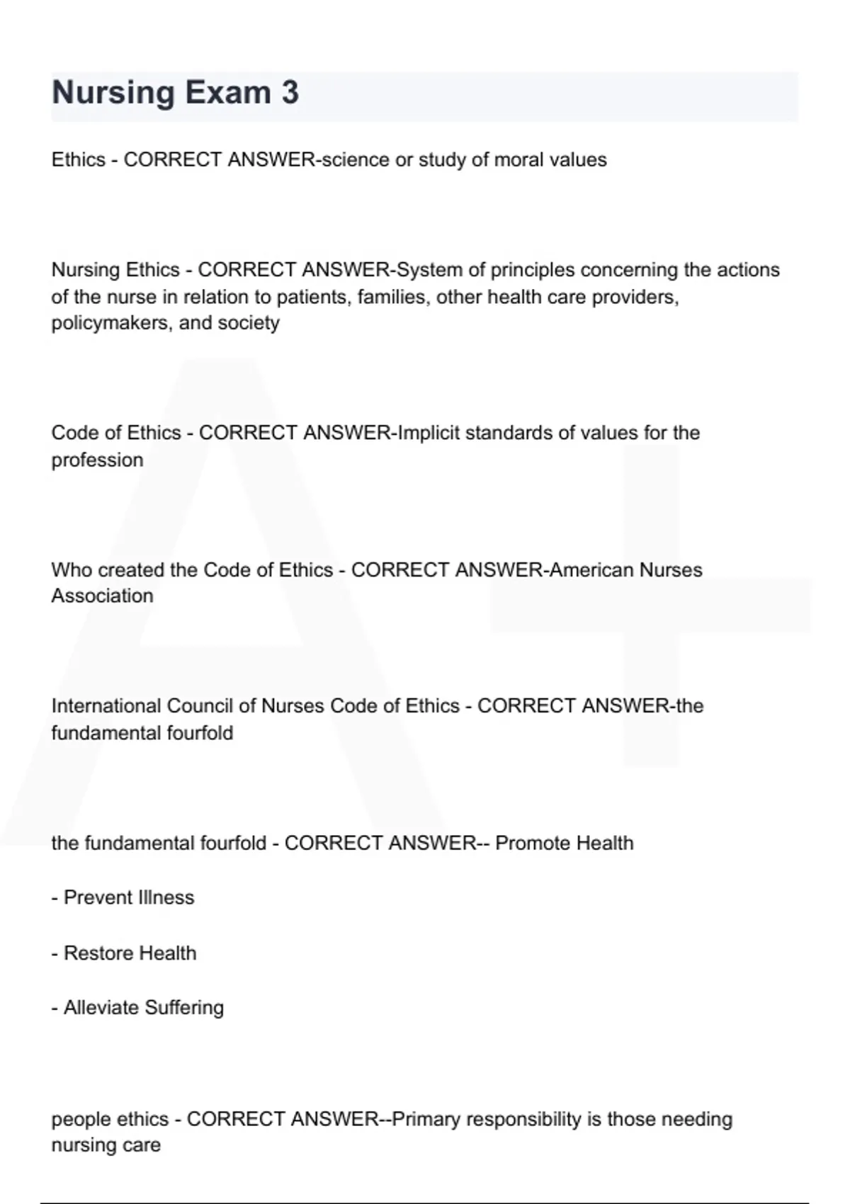 ‭ ursing Ethics - CORRECT ANSWER-System of principles concerning the actions‬
