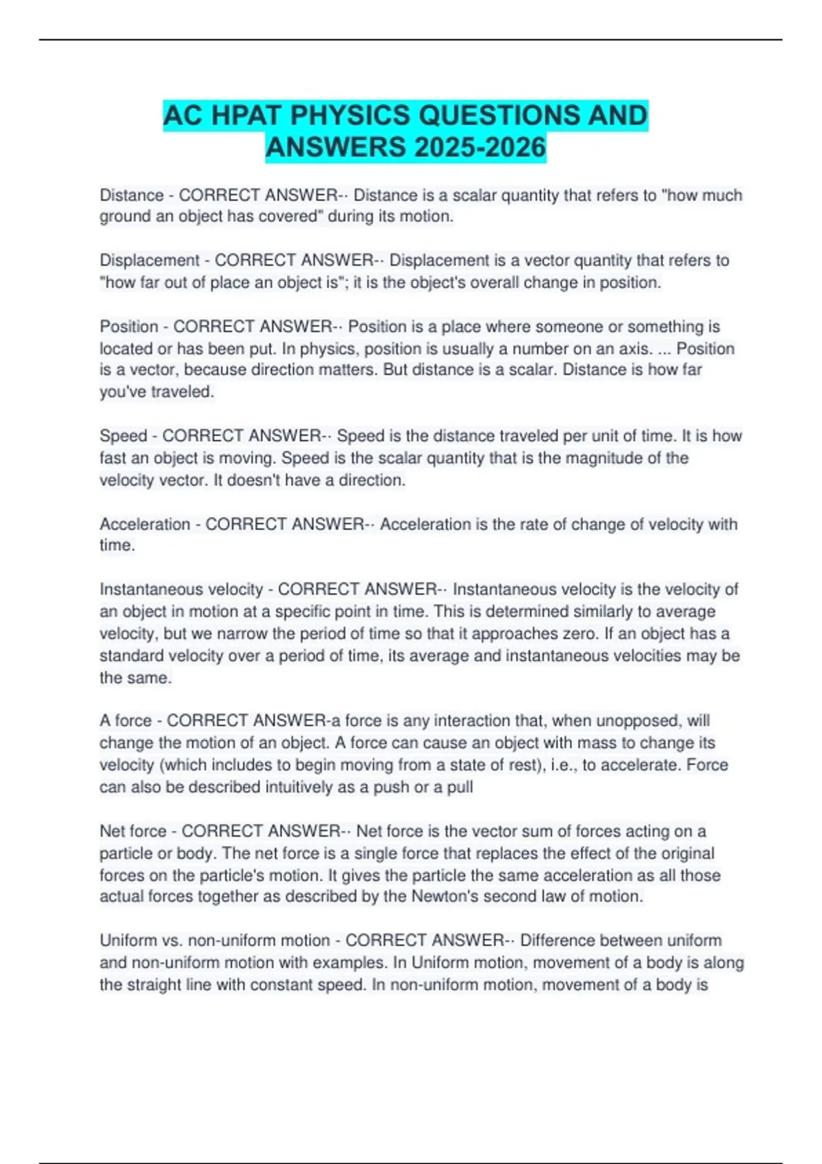 Instantaneous velocity - CORRECT ANSWER-· Instantaneous velocity is the velocity of