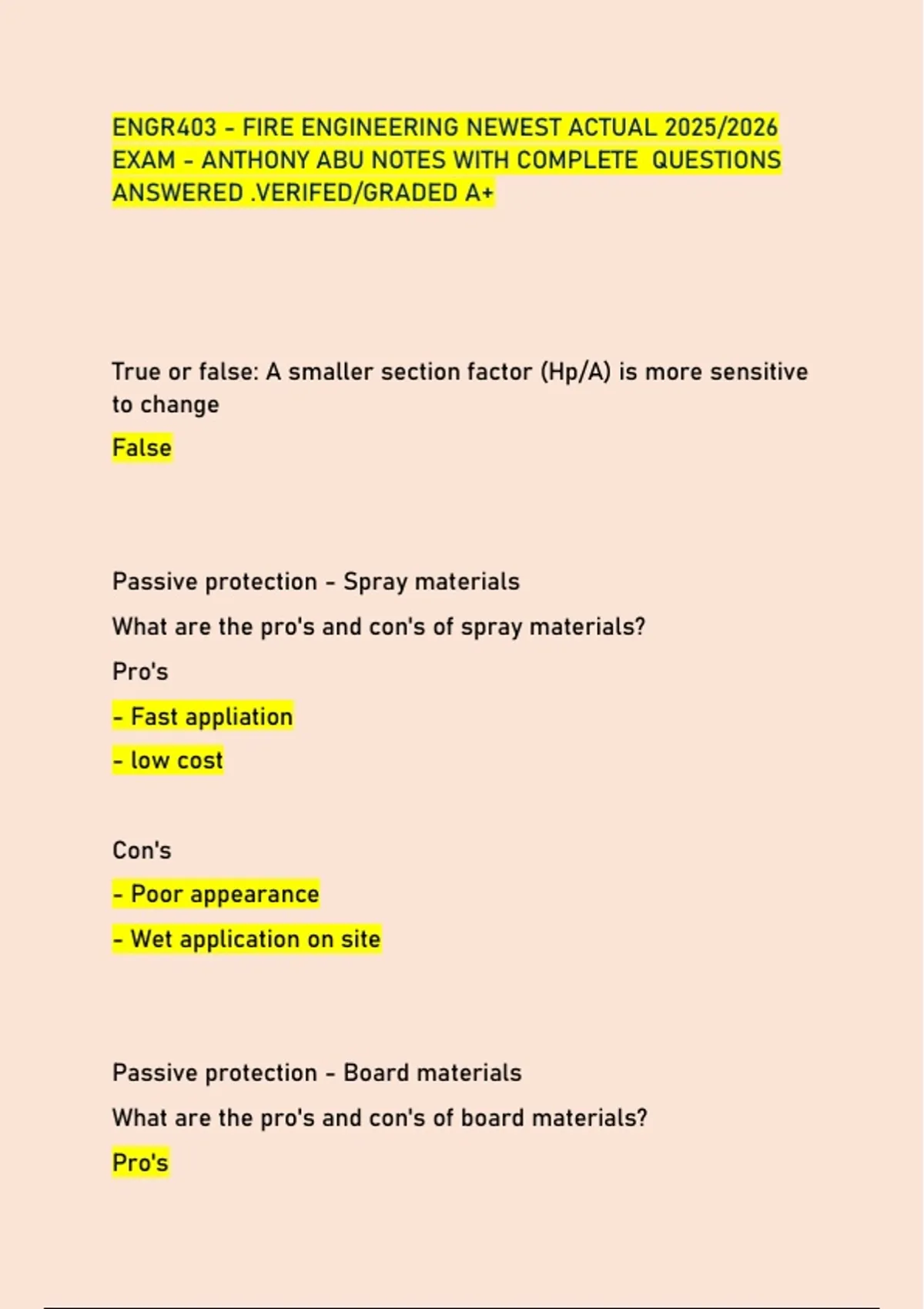 ENGR403 - FIRE ENGINEERING NEWEST ACTUAL 2025/2026 EXAM - ANTHONY ABU NOTES WITH COMPLETE QUESTIONS ANSWERED .VERIFED/GRADED A+
