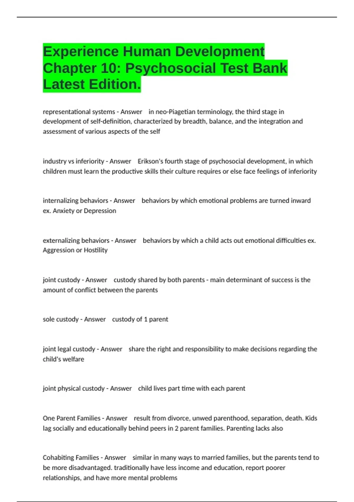 Experience Human Development Chapter 10: Psychosocial Test Bank Latest Edition.
