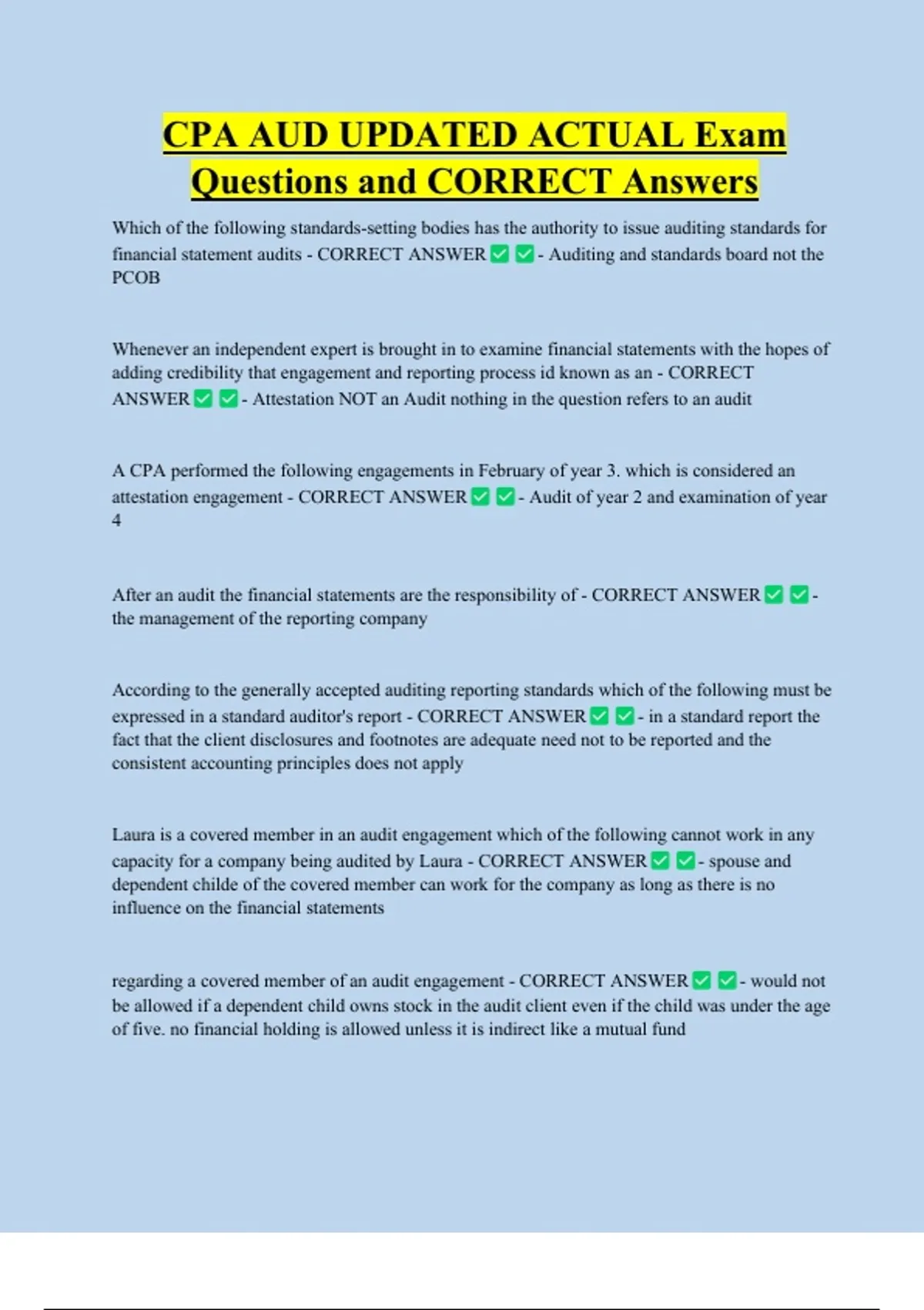 CPA AUD UPDATED ACTUAL Exam Questions and CORRECT Answers