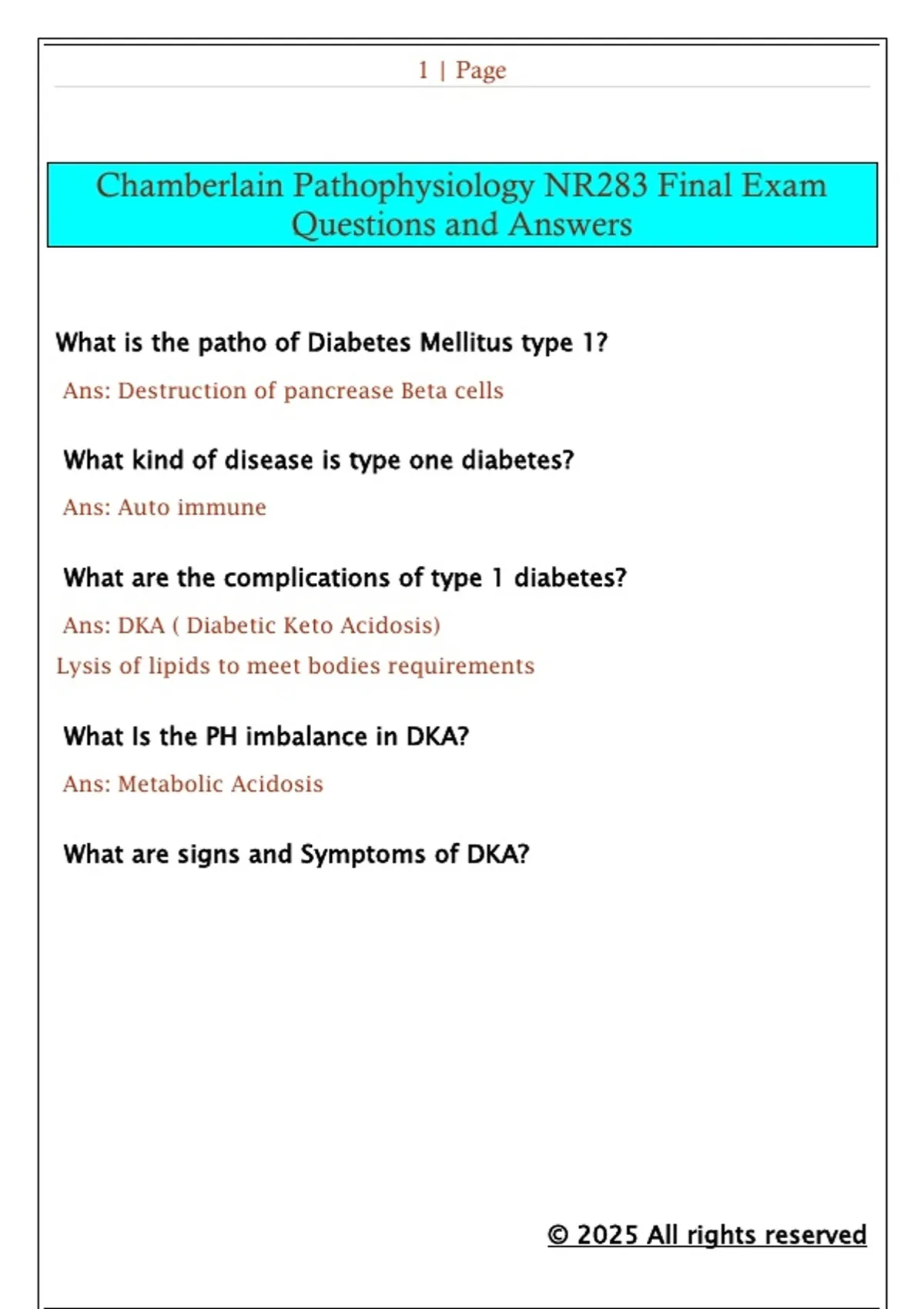 Chamberlain Pathophysiology NR283 Final Exam Questions and Answers
