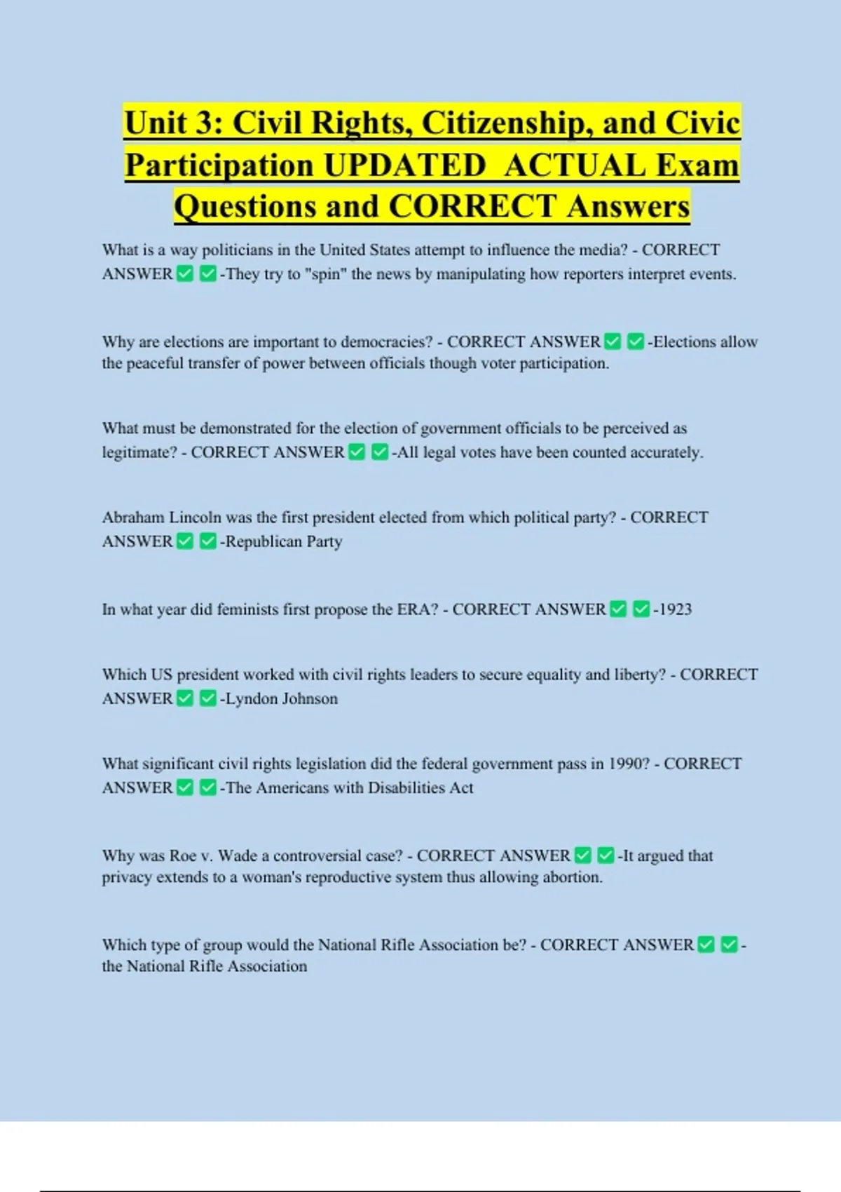 Questions and CORRECT Answers