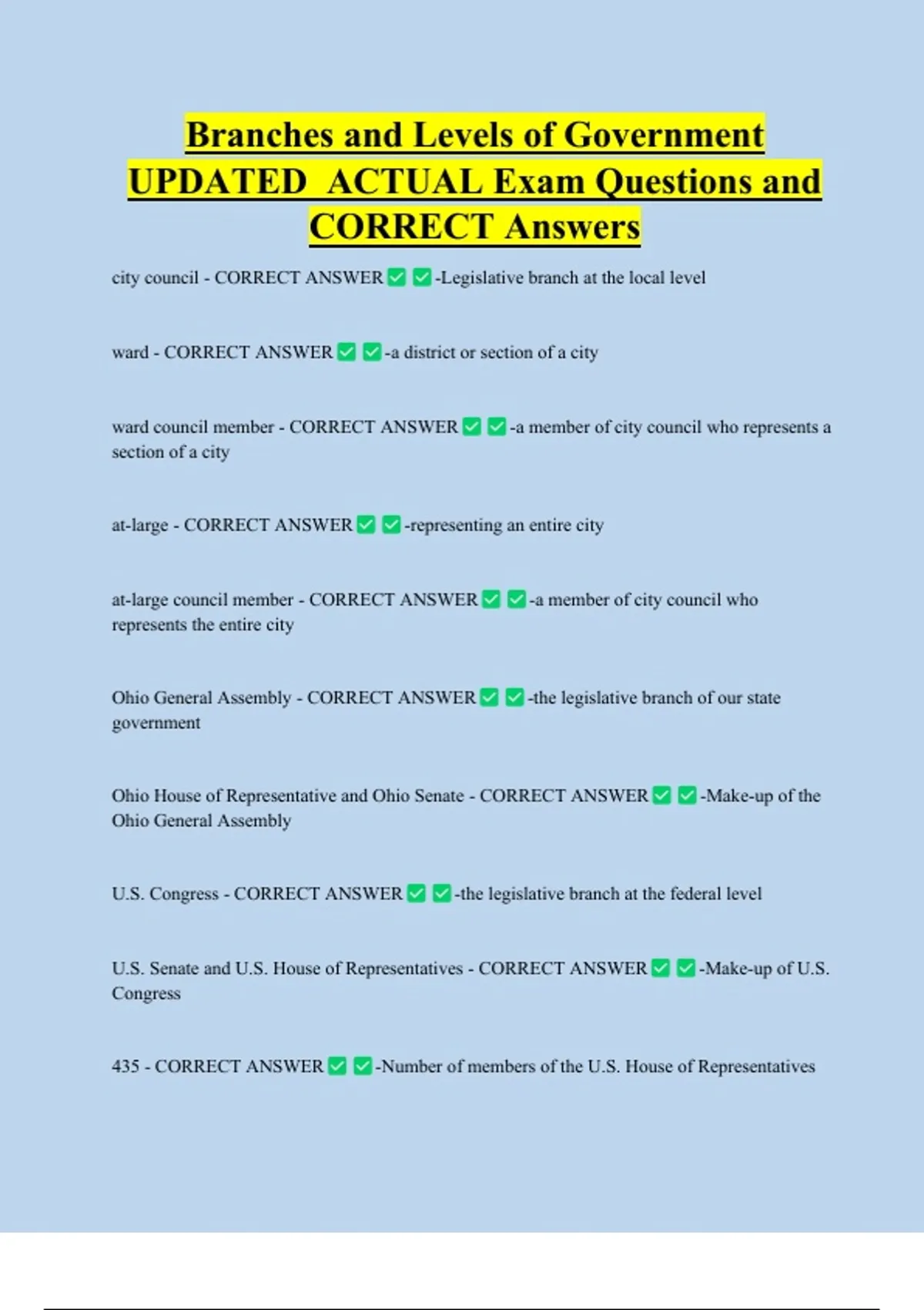 Ohio House of Representative and Ohio Senate - CORRECT ANSWER -Make-up of the