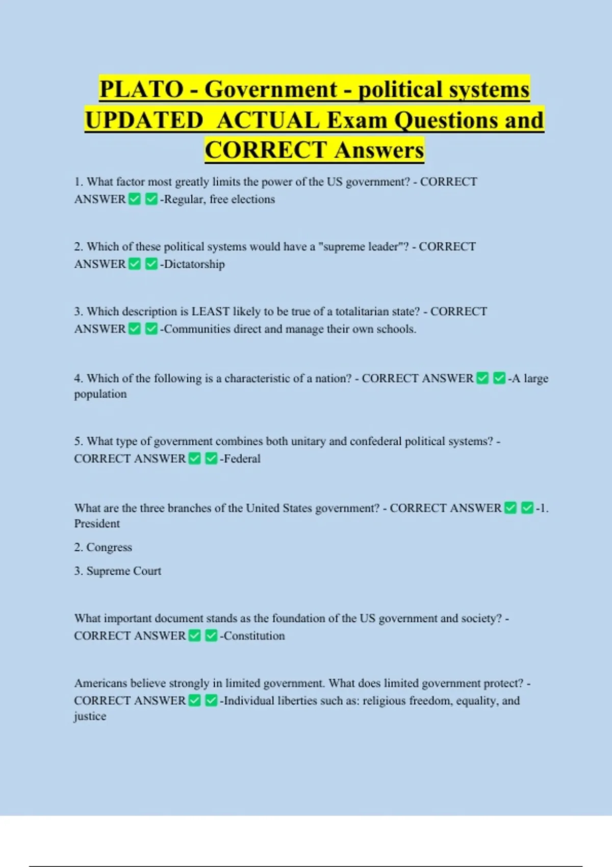 1. What factor most greatly limits the power of the US government? - CORRECT