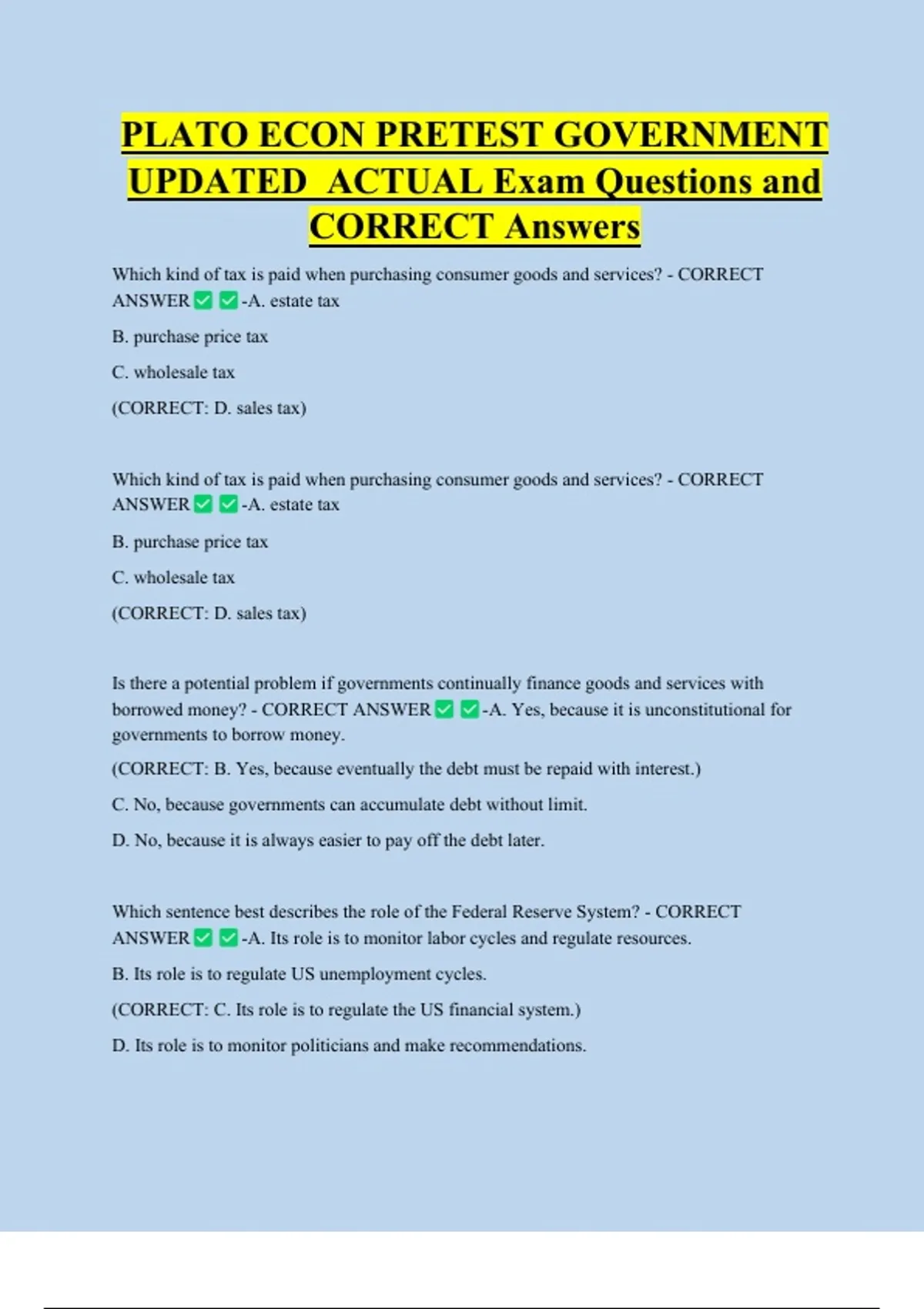 CORRECT Answers