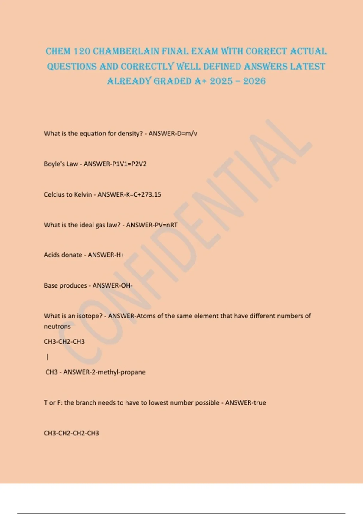 CHEM 120 CHAMBERLAIN FINAL EXAM WITH CORRECT ACTUAL QUESTIONS AND CORRECTLY WELL DEFINED ANSWERS LATEST ALREADY GRADED A+ 2025 – 2026
