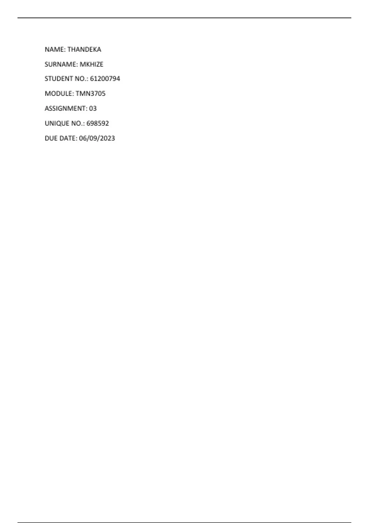 SURNAME: MKHIZE