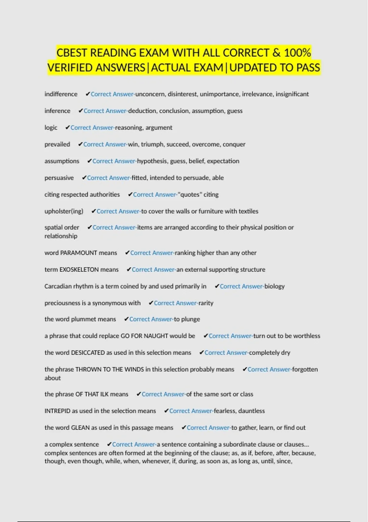 VERIFIED ANSWERS|ACTUAL EXAM|UPDATED TO PASS
